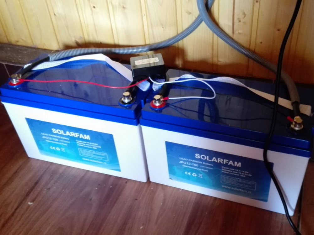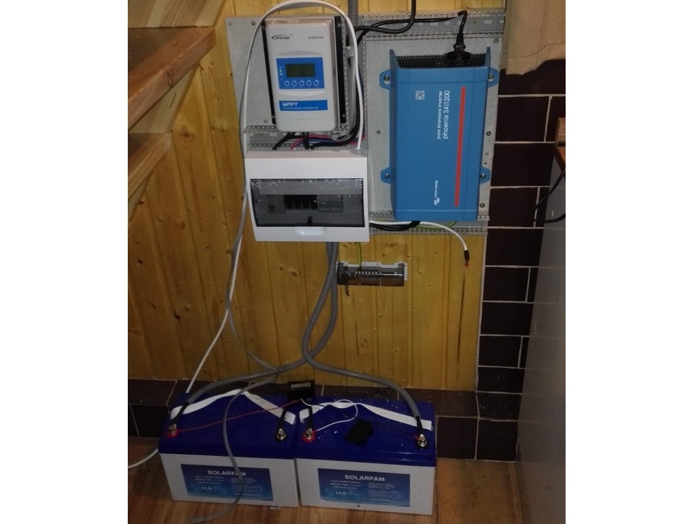 Systém využíva slnečnú energiu získanú z panelov na nabíjanie batérií, z ktorých je prostredníctvom DC/AC meniča pretransformovaná na 230V a ďalej distribuovaná do zásuviek, svietidiel, k spotrebičom, atď. Výkon meniča a kapacita batérie musia byť prispôsobené výkonovým požiadavkám spotrebičov v rámci objektu. Používa sa na miestach bez el.prípojky, najmä chaty, karavany, záhrady, atď.